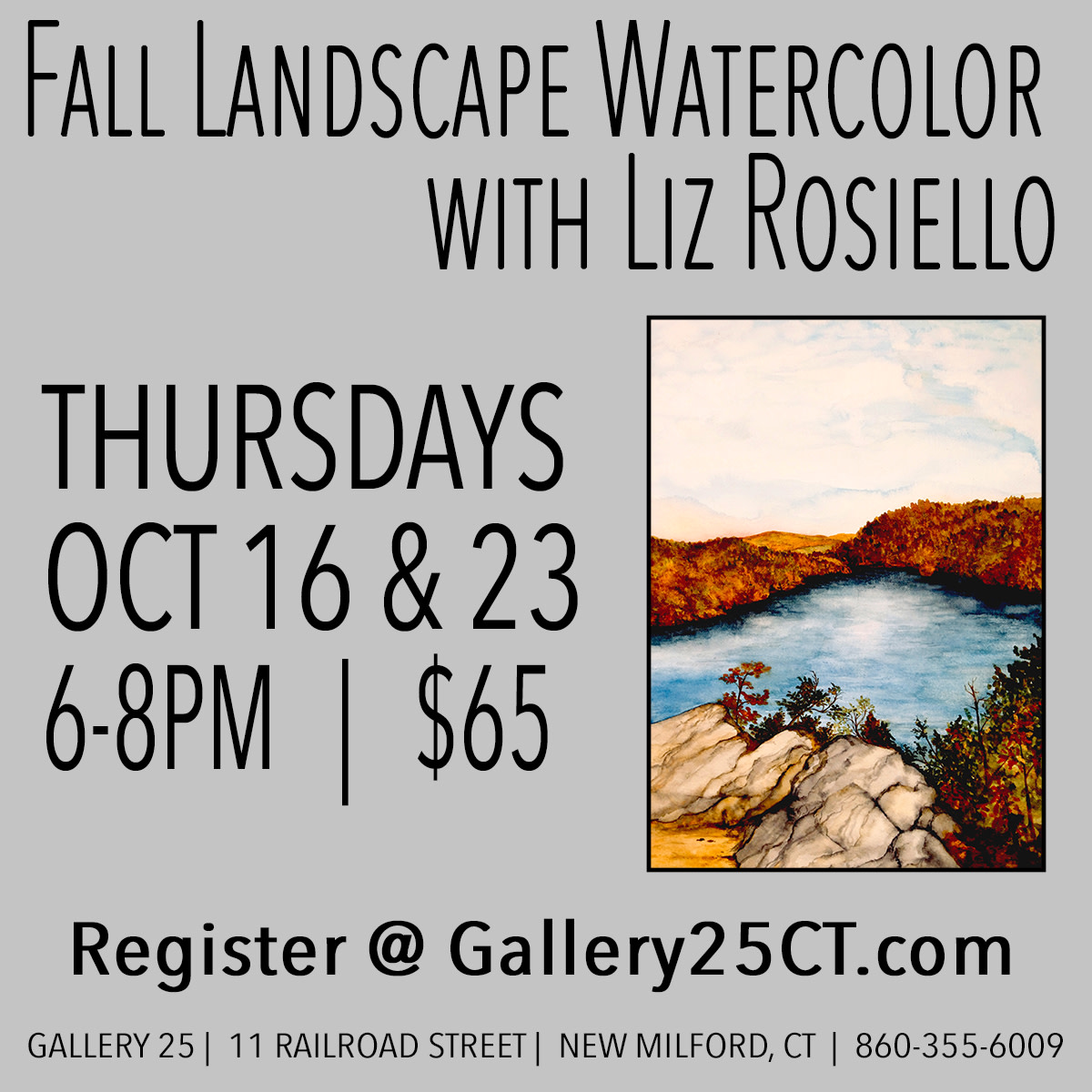 Celebrate the beauty of autumn through watercolor in this two-part class led by talented local artist Liz Rosiello.