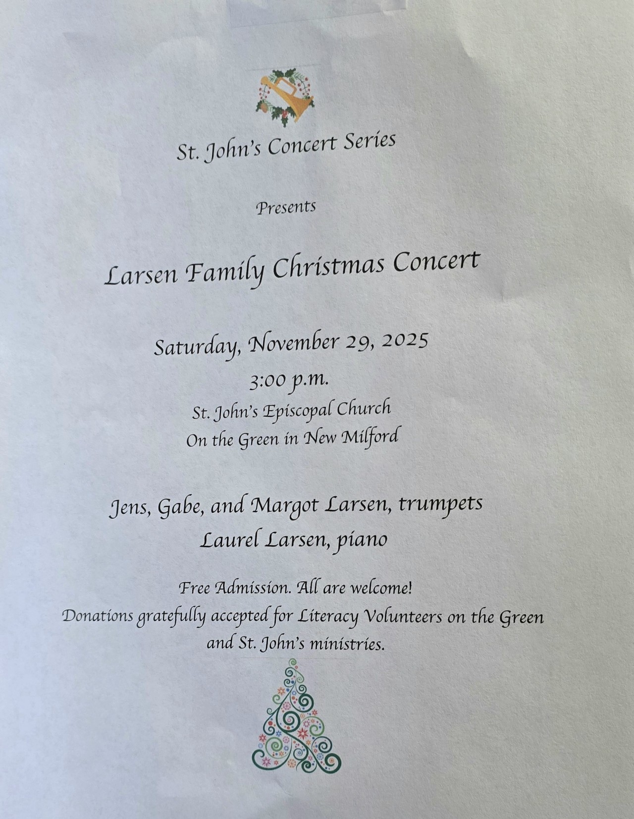 Admission is free. Donations gratefully accepted for Literacy Volunteers on The Green and St. John's ministries.