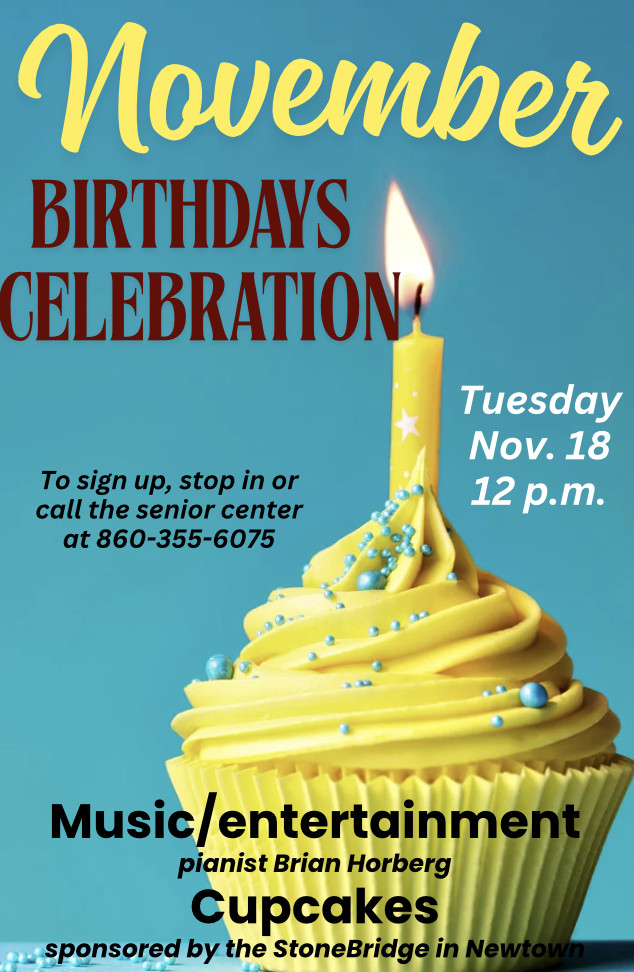The New Milford Senior Center will hold a November birthdays celebration Nov. 18.