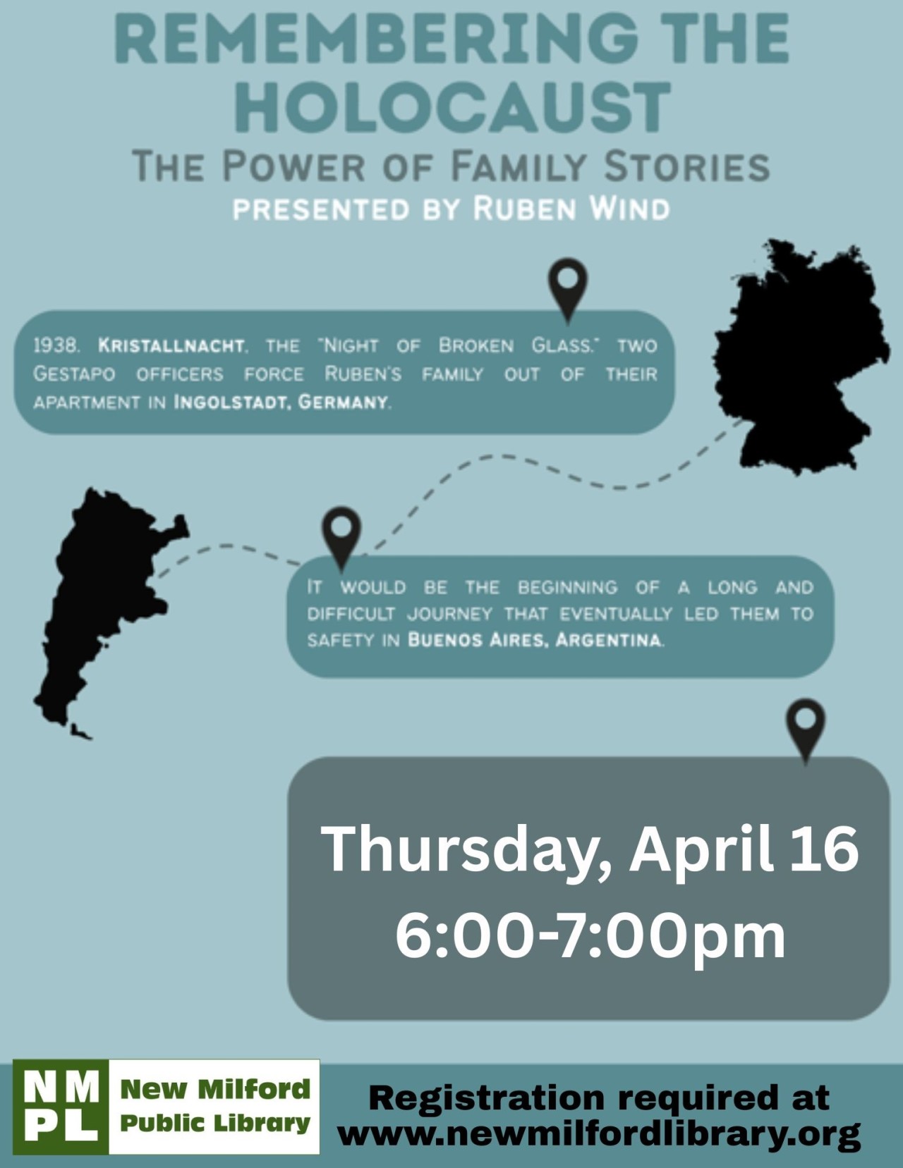 Remembering the Holocaust. The power of family stories. Ruben Wind, the child of Holocaust survivors, will tell his parents' stories of escaping from the Nazi regime even as the walls were closing around Jews throughout much of their former homeland. Ruben's account of his parents' fortuitous flight to South America will be seen in the context of the unprecedented horrors occurring throughout Europe. He shares the story beginning during the Holocaust and the decades that followed. Ruben is passionate about sharing his family’s story. He believes it’s incredibly important to educate younger generations about the Holocaust — to make sure it’s never forgotten and never repeated.